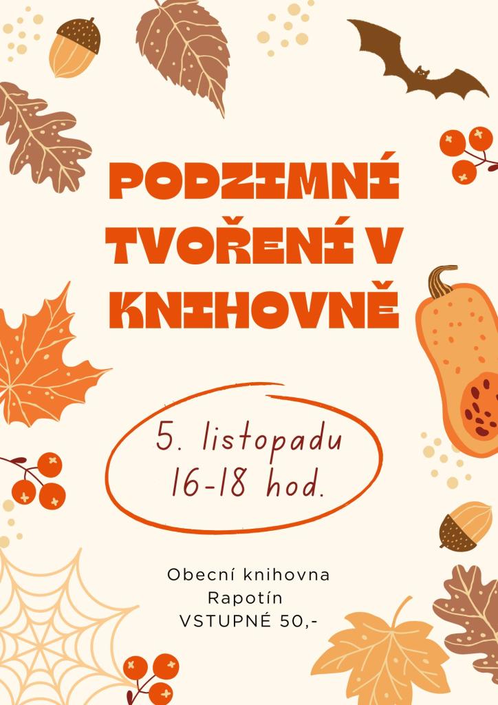 Tvoření v knihovně tentokrát na téma podzim a Halloween proběhne od 16:00 v prostorách knihovny.